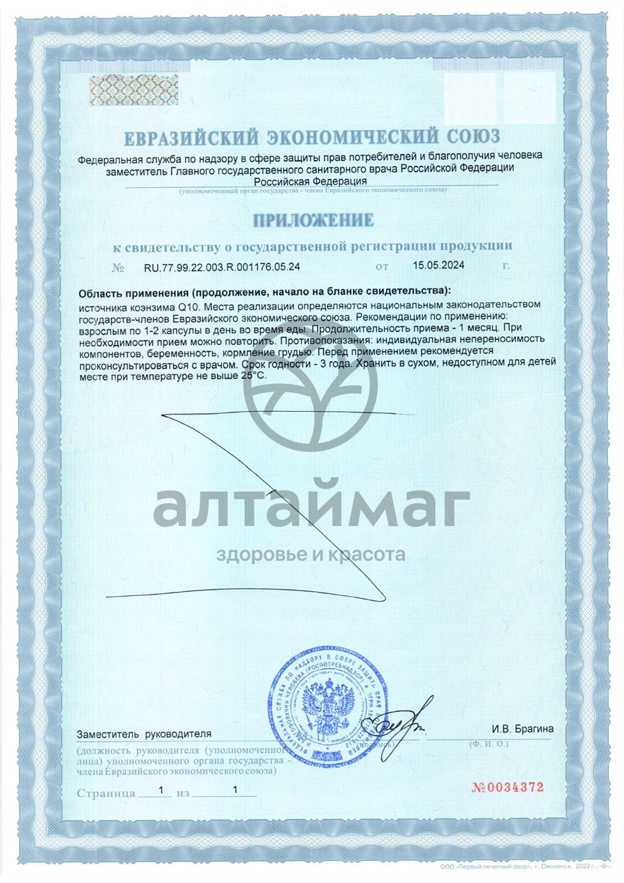 Антислеживающие агенты тальк и микрокристаллическая целлюлоза, коэнзим Q10, капсула (желатин).Способ применения